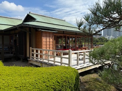 浜離宮恩賜庭園を代表する景観として知られる、潮入の池に浮かぶ中島の御茶屋。「茶席」(要事前予約)会場のひとつです。