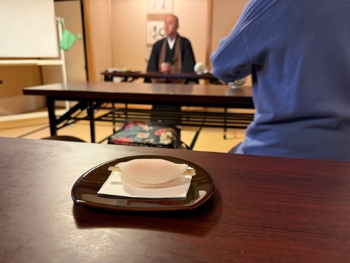 講義の最後には毎回薄茶をいただけるそうで、今回のお菓子は花びら餅でした。1時間半ほどの講義でしたが、講座の皆様でお茶とお菓子をいただいてホッとした雰囲気となって終了となりました。